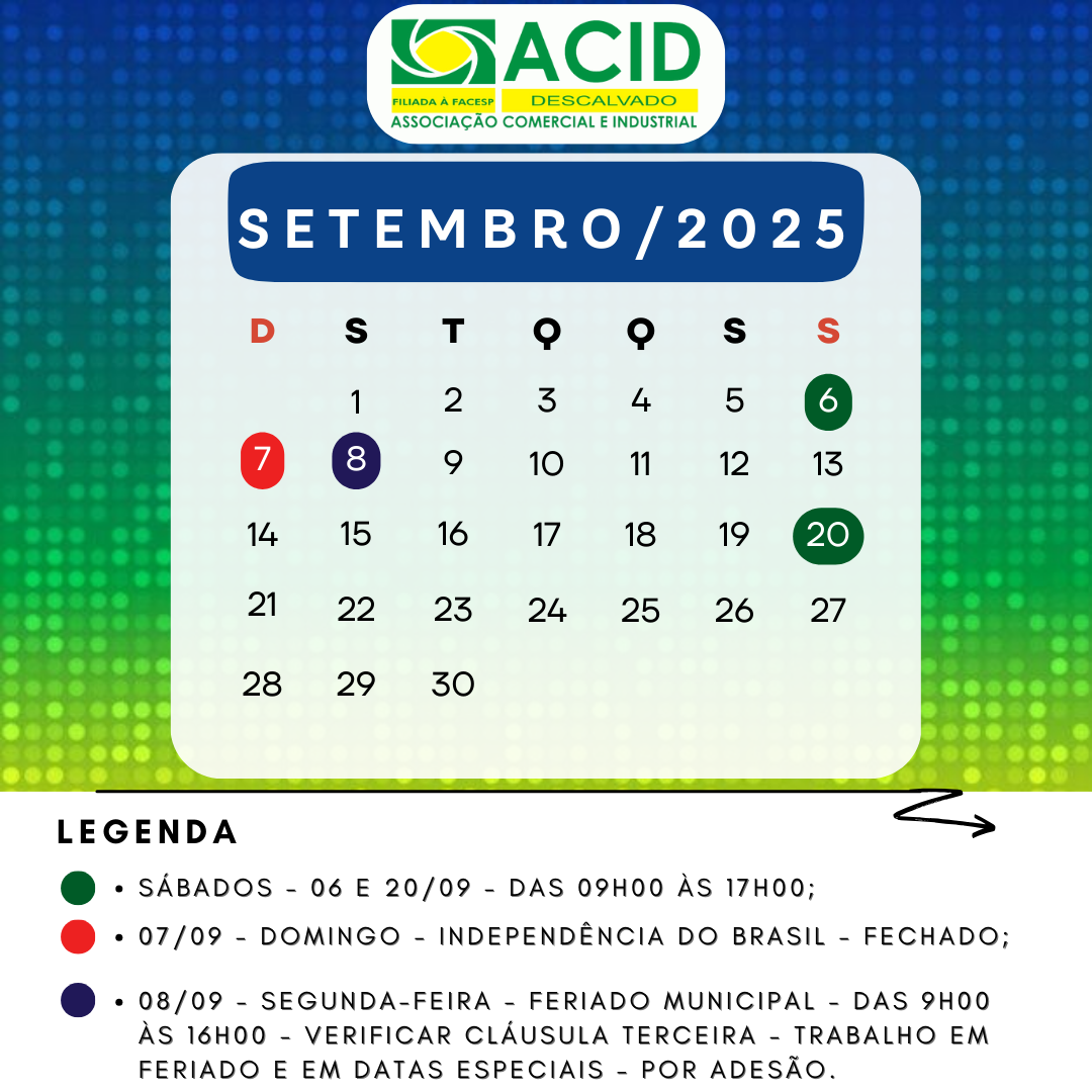 HORÁRIO DO COMÉRCIO - SETEMBRO/2025