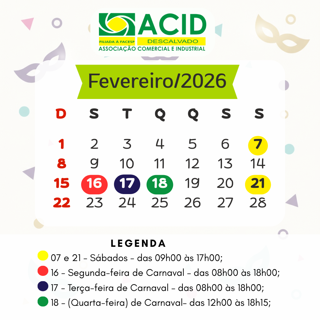HORÁRIO DO COMÉRCIO - FEVEREIRO/2026