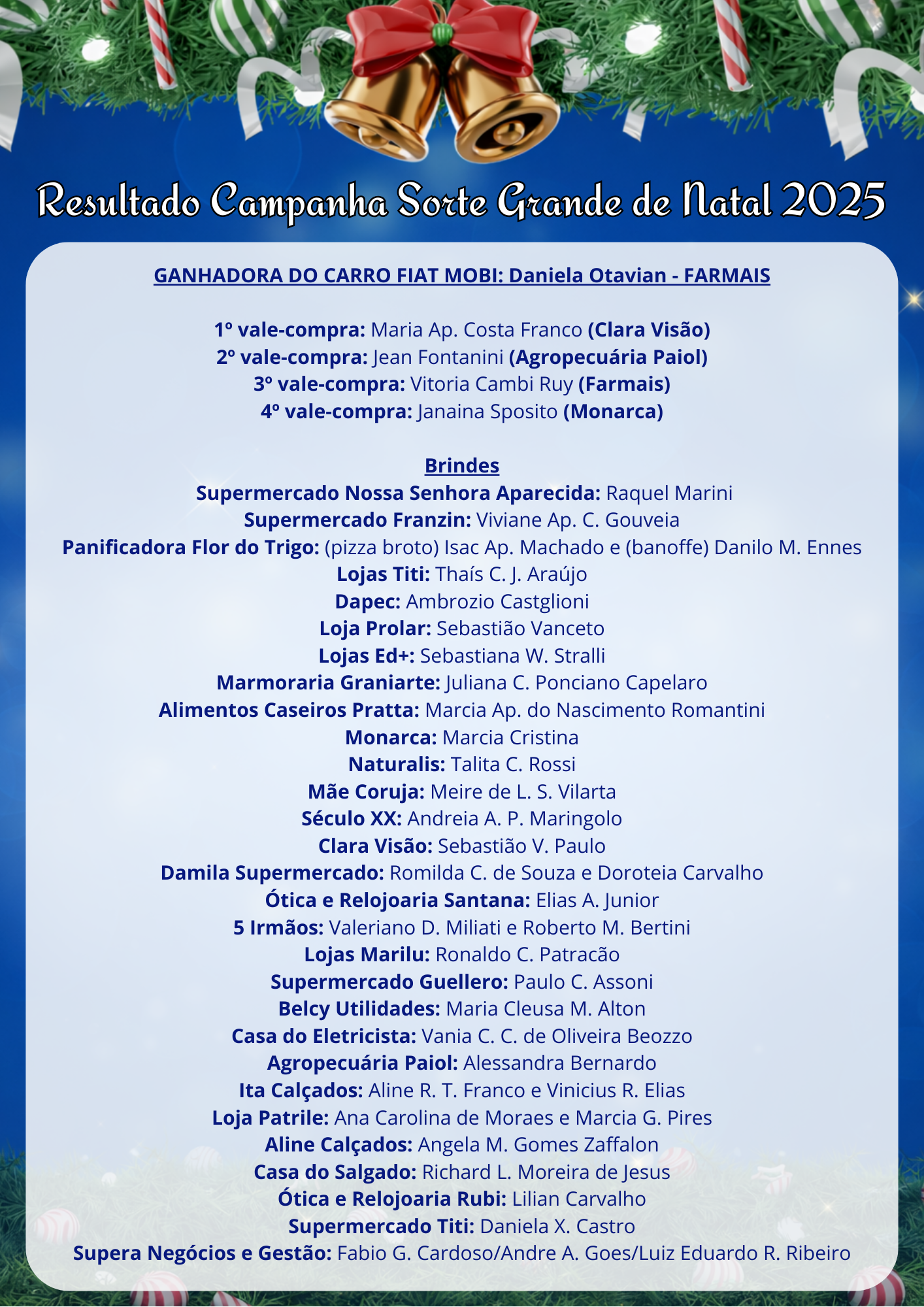 RESULTADO OFICIAL – CAMPANHA SORTE GRANDE DE NATAL 2025